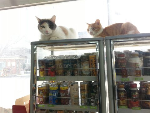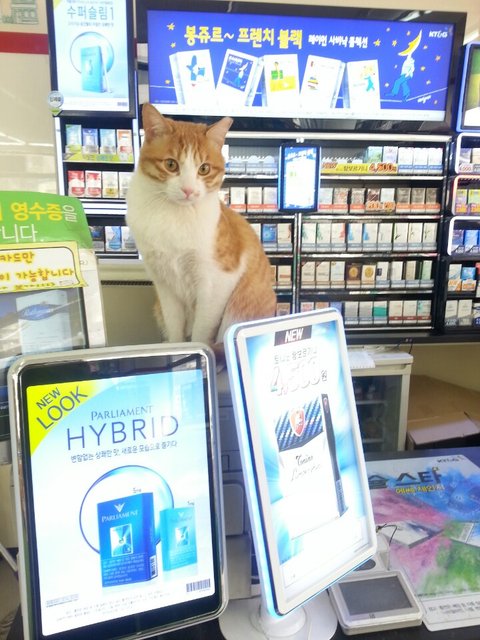 카운터 담배진열대 위로 올라가는걸 좋아해요!가끔 올라간지도 모르고있다가 내려오는소리들리면 깜짝깜짝놀란답니다ㅋㅋ