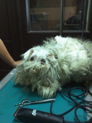 말도 못하게 엉켜버린 털, 그리고 잘려나가있던 귀