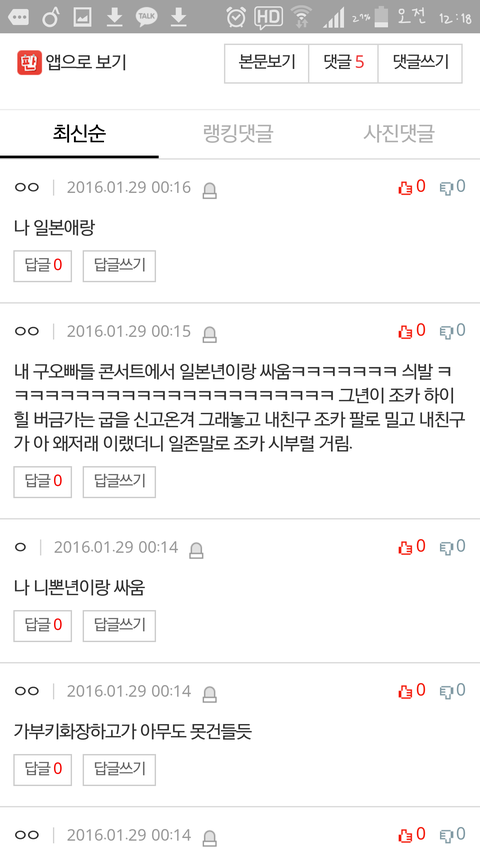 니뽄년들이랑 싸운애 많네 ㅋㅋㅋ