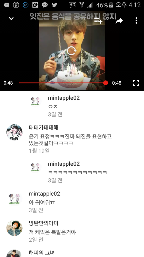너튭 그 뷔앱 영상 편집한거 맨뒤에 이사진떴길래..나 처음봐서 혹시 공카짤이니?알면 바로 삭할께..말툰 둥글게해줘 나 심장약하단말이야 ㅠ