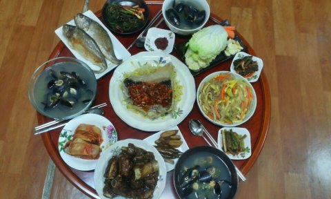 홍합탕 끓이고~ 돼지갈비 양념해서 만들고~ 조기도 굽고~ 메인은 콩나물 홍어찜~ 그리고 잡채! 이날 거하게 차렸네요 ㅎㅎㅎ