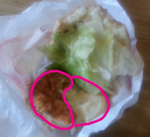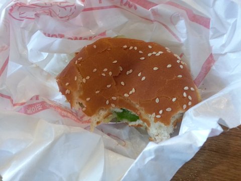 오른쪽에 치킨패티가 거의 비어 있음