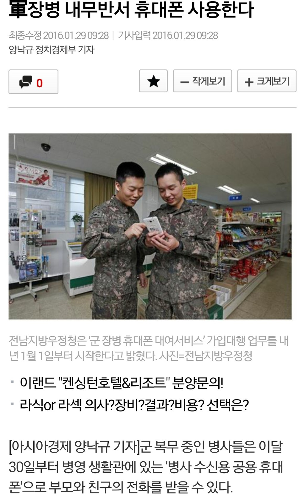 71회 내무반에서 휴대폰 사용 가능