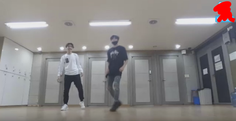 그래서 둘이 똑같은 위치에서 춤...