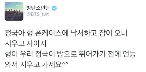 지민랑 태태가 자는 정국이를 괴롭혔던...지민이의 가슴치기 다들 기억하시나(대사:쩡국아 나의 가숨을 받아뢋~얍,정국이 니 요즘 와그라노,와 드릅나 등등)