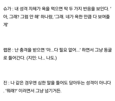 정꾸랑 슥지는 쿨워터 진동하는데 남준이랑 지민인 신경엄청 쓰나봄 ㅜ ㅜ 근데 표현이 너무 귀엽지않아?ㅠ ㅠ 동굴이래 ㅠ ㅠ