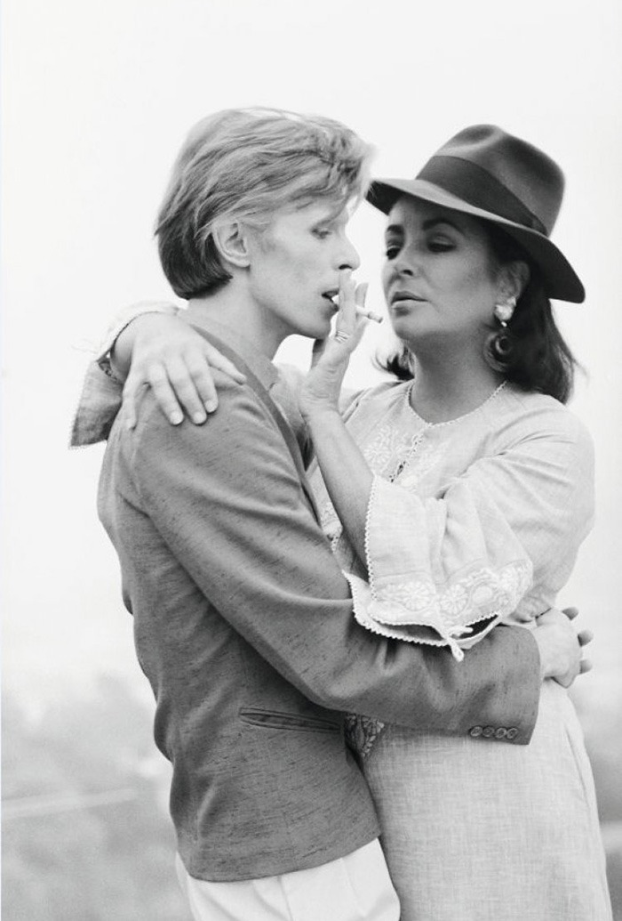데이비드 보위와 담배를 나누어 피는 엘리자베스 테일러, 비버리 힐스(1975)