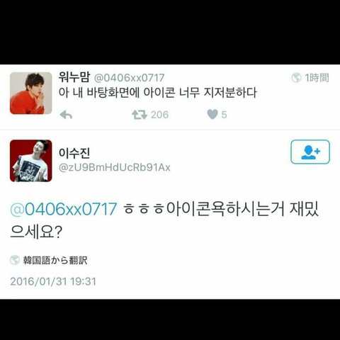 타팬인데 폰으로 톡톡보다 하도 심해서 댓글 남김. 누구팬인지는 모르겠는데 트위터 캡쳐하면 아이돌 팬덤에서 안 털릴 팬덤 없어. 그냥 넘기면 되지. 엑소 - 방탄 - 아이콘 이 순으로 판에서 엄청 까이네. 옛날에 엑소는 늑미 으르렁 중간쯤에 까글 엄청 올라오고 방탄 최근 몇달, 그리고 아이콘. 질리지도 않나..? 타그룹 신경쓰고 견제할 시간에 자기 그룹이나 챙겨. 톡선에 아이콘 글만 몇개냐. 일부러 넘어졌다는 글 올리고. 혈안이 되어 꼬투리 잡으려 애쓰는 것 같음.