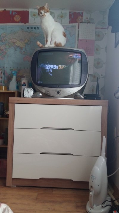만들어준 캣타워에 올라가 날 쳐다봄.