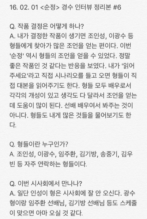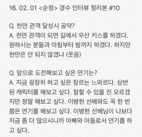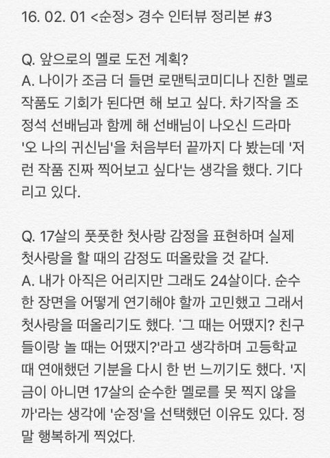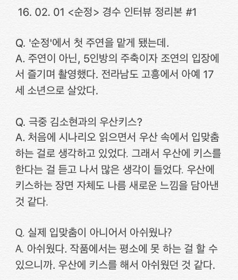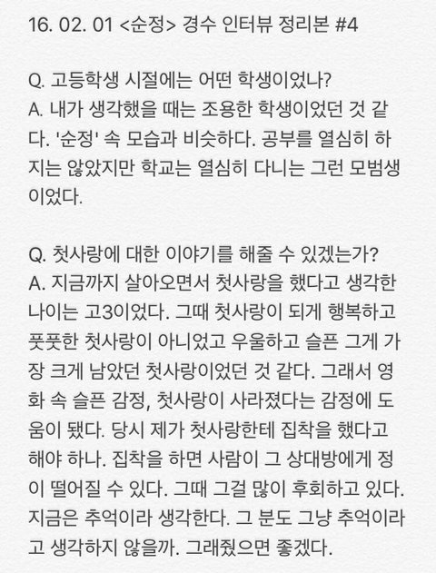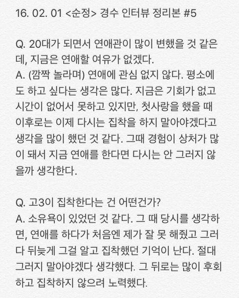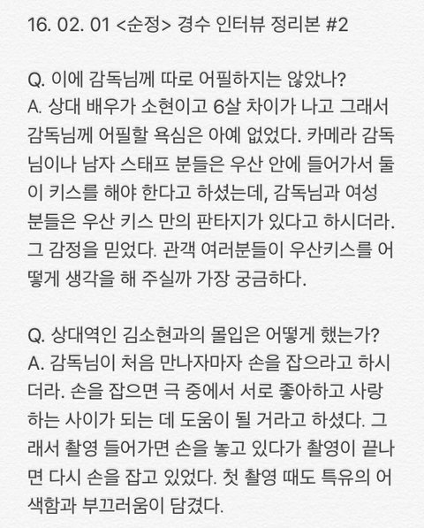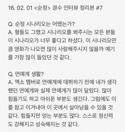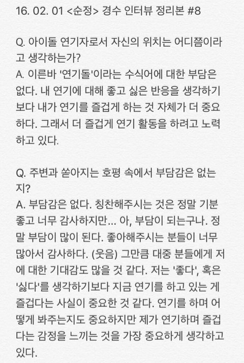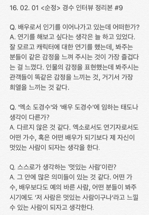 오늘자 경수 인터뷰 모음(관심없음 욕 ㄴㄴ 뒤로가기)