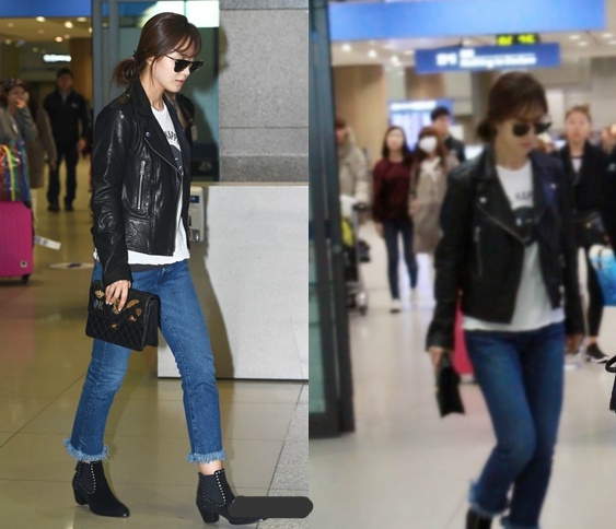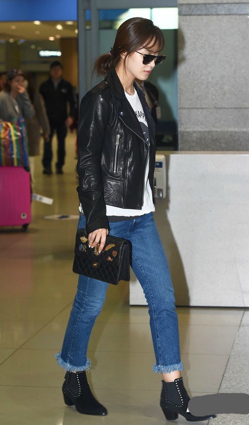 입국 때 모습인데 와~청바지에 라이더자켓을 입고도