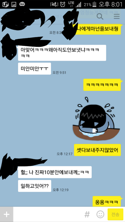 근데 준다준다 하더니 2주가 지낫고 결국 오늘 너무 열받아서 전화를 계속 했더니 차단을 함