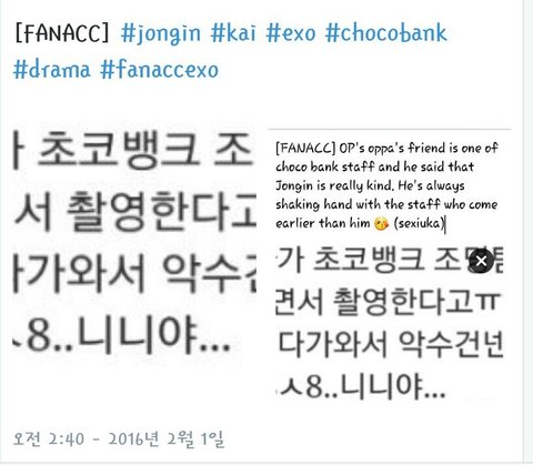 종인이 초코뱅크 다리 쩔룩이면서 촬영했대ㅜㅜ