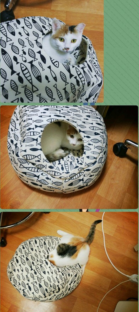 세미는 작년 5월 25일에 포획되어 중성화 수술을 했어요. 이후로 세미와 새끼 3남매는 임보처 여기저기를 떠돌았어요. 임보처를 몇군데나 옮겼는지 이젠 생각도 안나요...생각할때마다 미안할뿐입니다. 3남매는 다들 입양가서 잘 지내고있는데 세미의 진정한 가족은 아직 나타나지 않았답니다. 삐쩍 마르고, 갸날픈 체구였던 세미는 좋은 임보자를 만나 살도 찌고, 귀요미 세미가 되었구요. 사실 적응못할줄 알았는데, 그놈의 미친 적응력은 사람도 놀라게 합니다ㅎㅎ 하긴.... 길생활을 원해서하는건 아니지만, 따뜻한 가정에 들어가니 포근하고 아늑하고 제일 좋은곳은 동물이 먼저 알아보는 법입니다