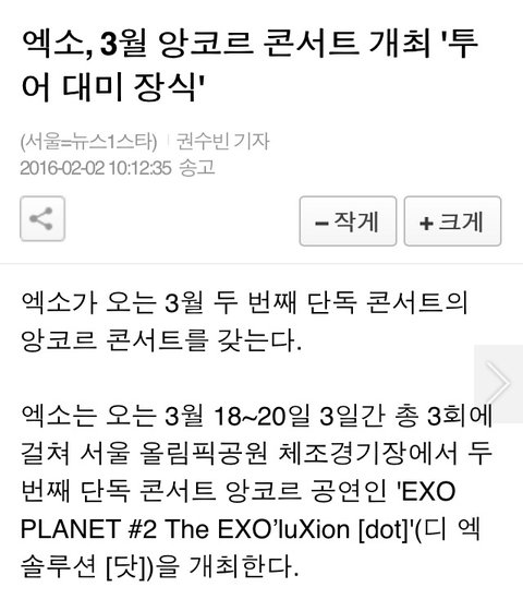 엑소 앙코르 콘서트 3월 개최