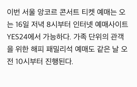 티켓팅은 오는 16일 오후 8시.