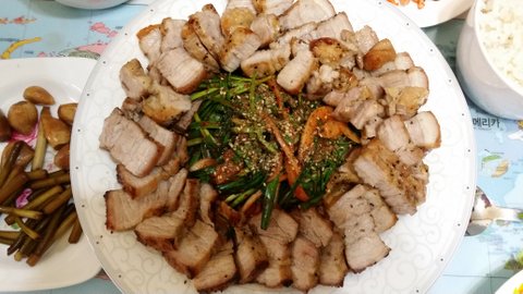 삼겹살 오븐 구이 이날은 고기보다 부추무침이 더 인기가 있었어요