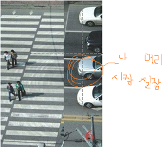 젤 앞에서 신호가 걸려서 차를 멈추고 횡단보도를 건너는 사람을 기다리고 있었음 대충 이런 상황이지였음