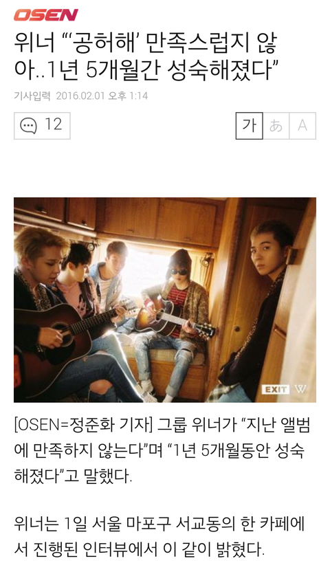 단지 기자가 제목에 '공허해'를 위너 1집 앨범을 대신하여 썼을 뿐임