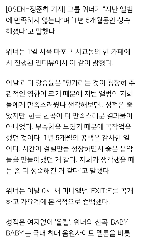 이 기사 제목은 판에 '비아이가 작곡한 공허해를 위너가 만족스럽지 않다고 한다'라고 주장하는 글과 함께 올라온거임