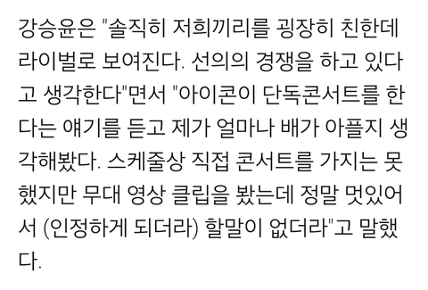 강승윤이 아이콘 단독 콘서트에 대해 배아파했다는 댓글이 보이길래