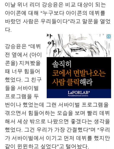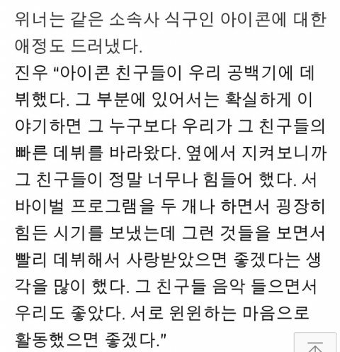 다시 한 번 위너 인터뷰에 대해 기분나빴던 아이코닉들한테 미안해