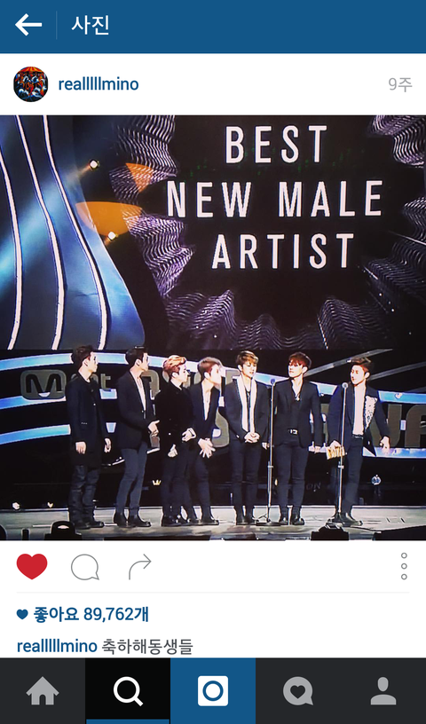 마마에 참석하고 신인상을 탄 아이콘을 축하해주려 인스타에 올린 게시물임..