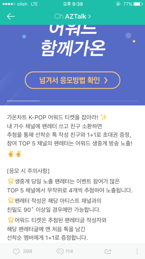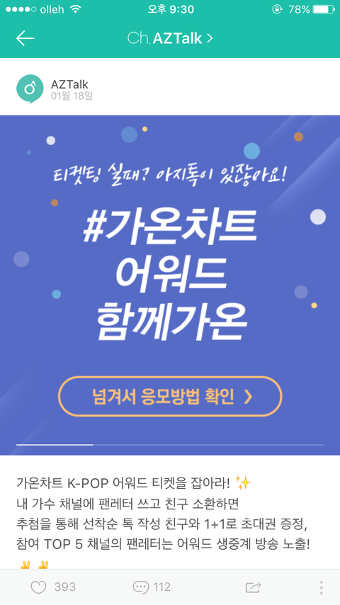 가온차트 어워드 티켓 초대권 준당