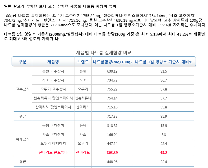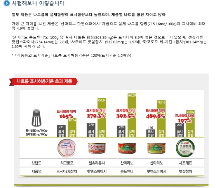 참치캔 일부 제품, 실제 나트륨 함량 표시보다 높아?!