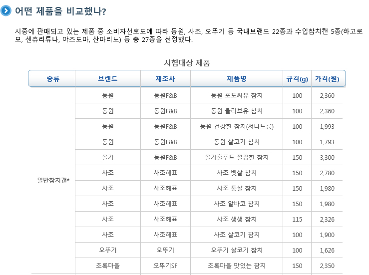 -참치캔 27종 비교 -