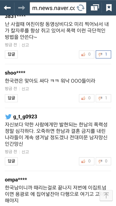 여자는 맞아야한다고 소리치고