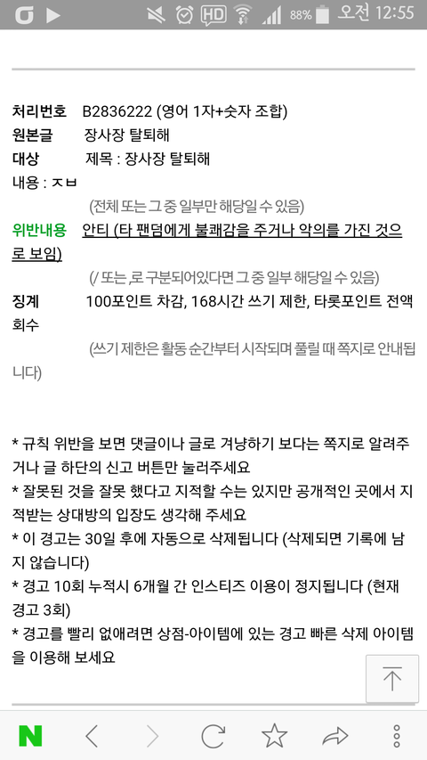 ㅇㅌ경고먹음