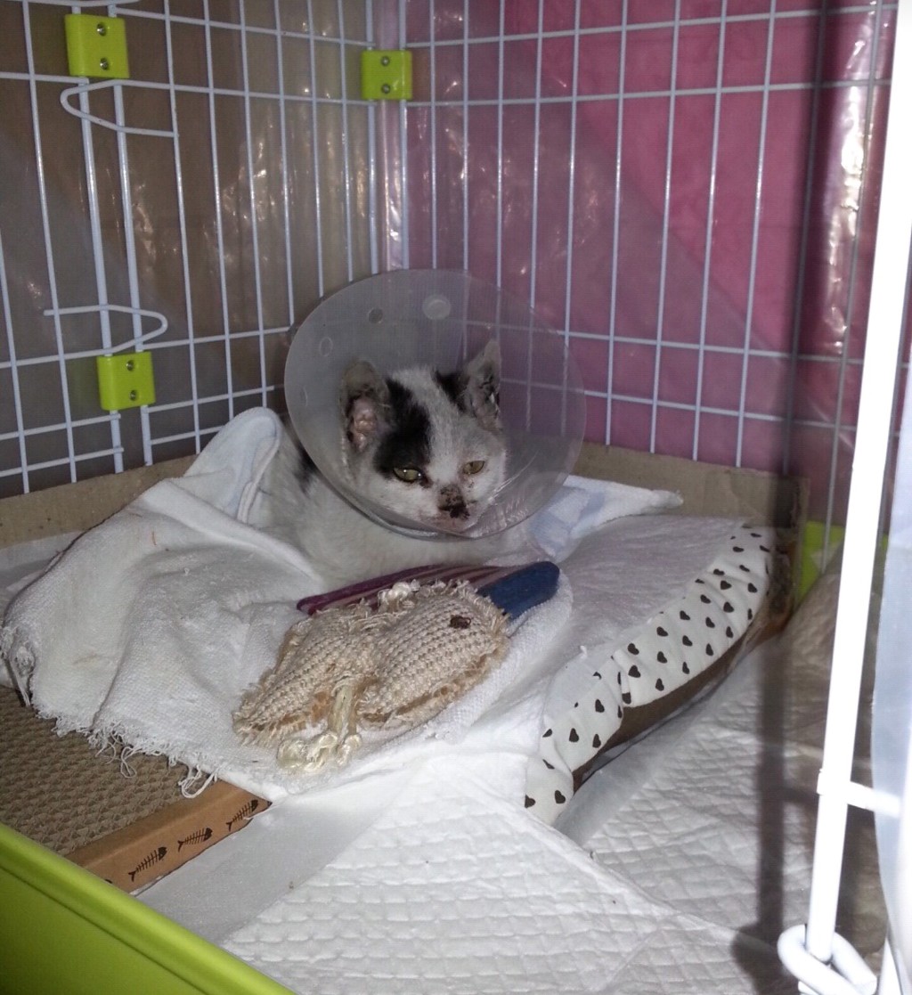 "죽은거 아니야?" 친구의 목에 둘러져있던 긴 스카프를 빌려 그것을 잡고 들어올리니, 얼마나 못먹었는지 스카프를 둘둘 말아서 잡았음에도 앙상한 뼈부터 제 손에 느껴지더라구요. 근데 그게 얼굴을 천천히 들더니 "까악-------- " 하고 동네가 떠나가게 울지않겠어요... 보니까 쥐새끼같은 새끼 고양이였어요. 게다가 긴 꼬리는 완전 똥꼬쪽에 가깝게 잘려서 하얀 뼈가 튀어나온체로 대롱대롱 떨어지기 직전으로 매달려있고, 두 눈의 안구는 동물의 눈이 아니라 빨갛게 핏물이 번졌다고 해야하나..... 게다가 똥묻은거같은 심한 악취까지.... "아... 그 소리가 얘였구나..." 친구의 말인즉, 저희집 오는 길에 어디선가 까악까악 비명 소리가 나는데 어딘지 몰라서 친구는 그냥 지나쳐왔다는거에요. 근데 이 녀석을 보니 아까 그 소리가 얘라는거죠... 때마침 길건너 맞은편에 보이는 동물병원.... 단골 동물 병원은 5분 정도 걸어야하지만 그 순간 그 5분도 걷기싫어서 저와 친구는 앞에 동물 병원으로 갔어요. 사정 설명을 하니 대뜸 그 원장님이 저한테 그러시는거에요... "얘를 어떻게 하실거에요? 키울거에요, 어떻게 할거에요?"