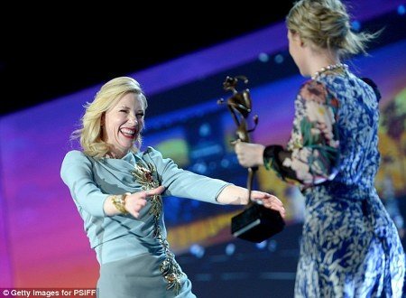 팜 스프링스 영화제에서 수상하고 굉장히 들뜬 케이트 블란쳇