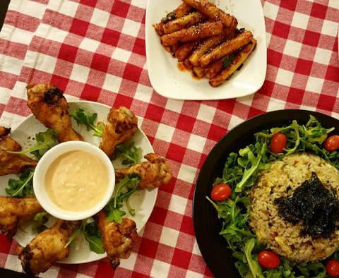 치킨 윙과 기름떡볶이 그리고 볶음밥. 오늘 저녁 메뉴입니다.