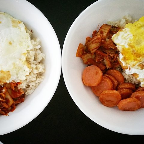 옛날 도시락, 통이 없어 그냥 대접에 ~ 여기에 김가루 뿌려 비벼먹었어요