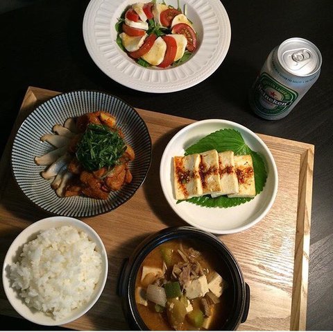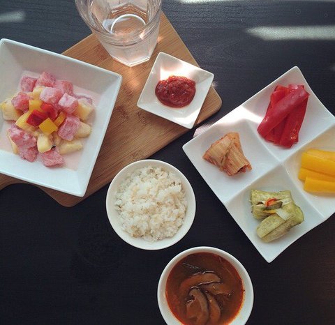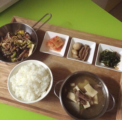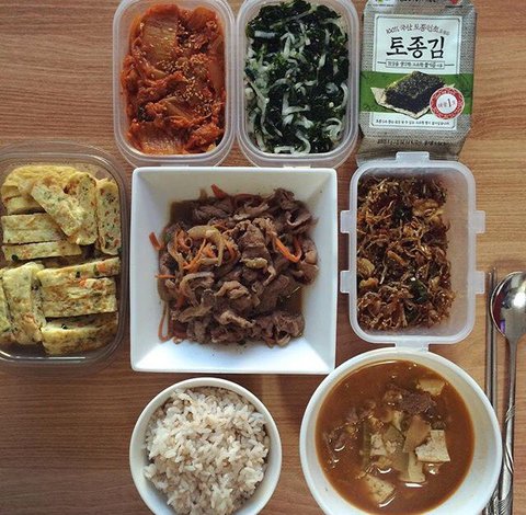 된장찌개, 달걀말이, 불고기, 김치볶음 등등