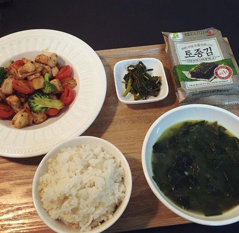 방울토마토와 여러가지 야채를 넣어 볶음 닭가슴살 볶음, 미역국