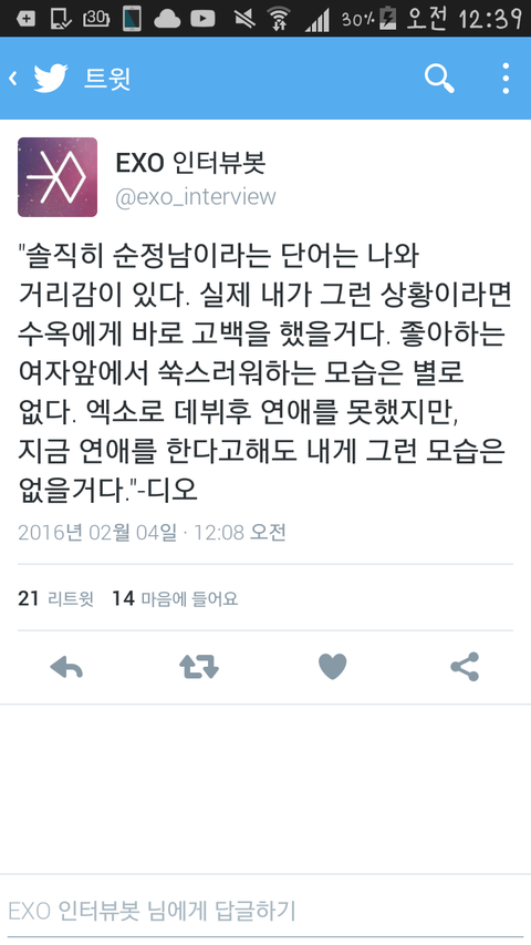 스엠에서 새 신인을 올렸다고 들어 오빠와 같이 보고있었지..