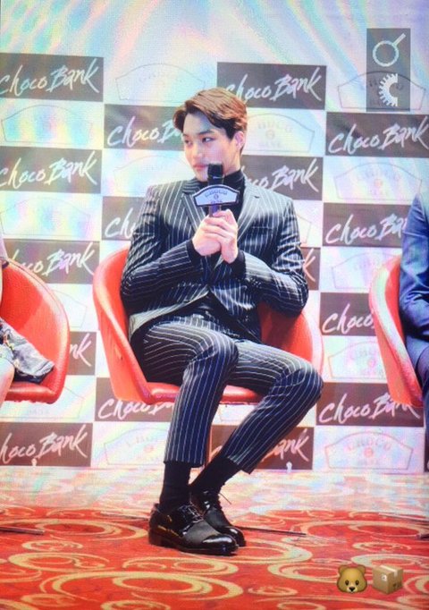 아니 이렇게 섹시하고 멋지게 차려입고 앉아있는건 완전 씹덕터지게 앉아있냐고ㅋㅋ 쪼코은행 제작발표회에 카이랑 니니랑 같이왔어ㅋㅋ