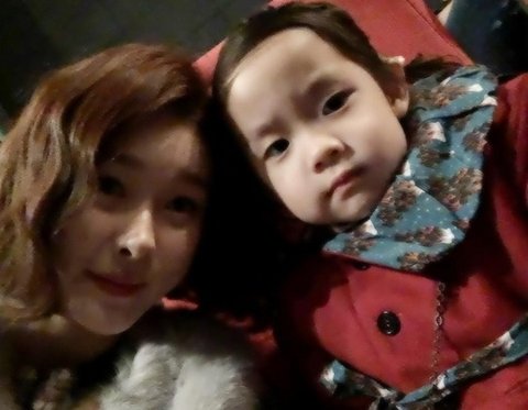 엄마는 너무 밝게 웃고있는데 딸은 인상파임