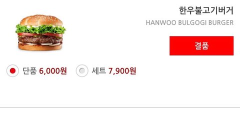 어느 지역 한우버거결품 ㅇㅅㅇ