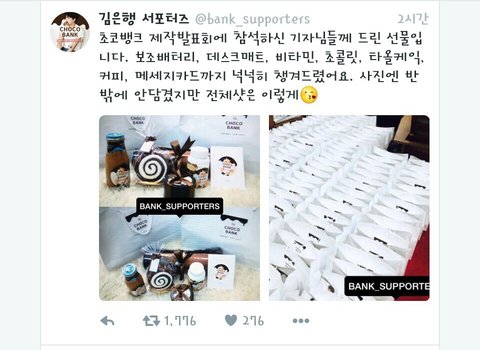 초코뱅크 제작발표회 오늘 서포트 들어간거