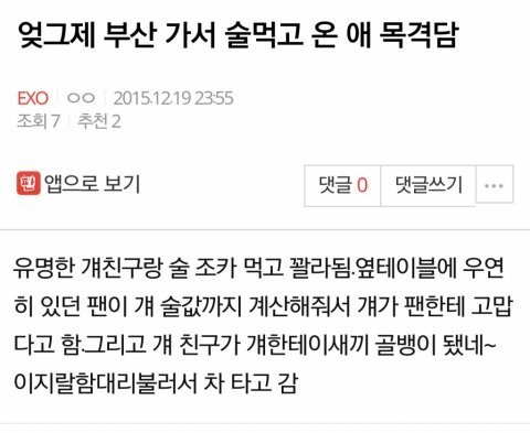 저때 부산 가서 술먹고 왔던 애 목격담