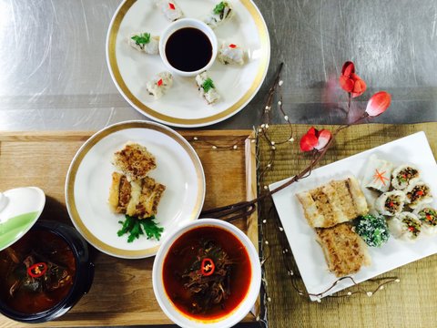 새우를 이용해서 메뉴개발하는 시간이었는데, 새우살과 숙주 여러가지 야채를 다져서 춘권피에 넣어 튀긴요리를 만들어 보았어요!