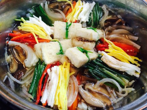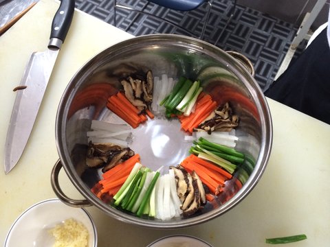 궁중음식 및 약선요리 실습 시간에 만든 두부전골이에요.