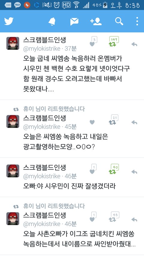민석이 오늘 굽네 씨엠송 녹음했대(시우민