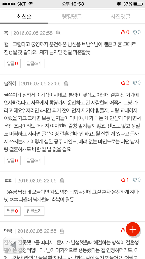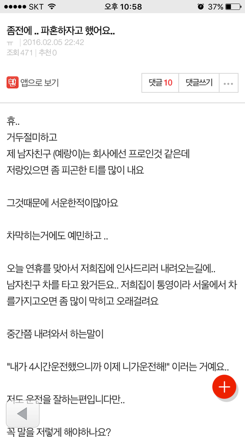 나도 통영사람이라 어디서든 내려오기 힘든 동네라는거 진짜 잘 아는데 저건 너무했다... 남자를 진심으로 좋아해서 만나온건 맞는지 궁금하네. 어쩜 저렇게 자기밖에 모를 수가 있지? 진짜 이기적이다...
