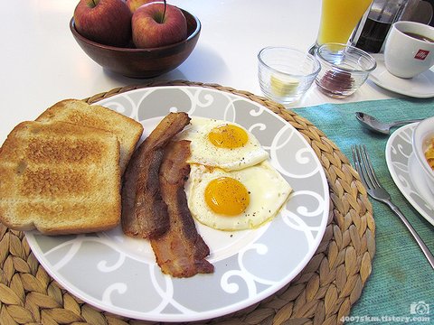 여기서 차림새를 줄이고 차가운 고기류와 빵 중심으로 가면 컨티넨탈 브렉퍼스트, 갖가지 고기 요리와 해쉬 브라운 및 콩 요리가 추가되면 잉글리쉬 브렉퍼스트가 됩니다. 원래 영국식 아침식사가 굉장히 거하게 먹는게 특징이라더군요. 그런데 생각해보면 애프터눈 티 셋트도 요란하기는 마찬가지이니... 그냥 하루 종일 많이 먹는다고 보면 될지도.