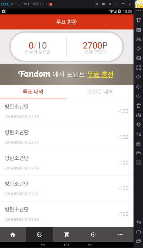 나 아이디 4개로 4천 포인트 했는데 선물받은 포인트로 한거는 내역이 왜 안나올까..아무튼 투표인증~~ 이거 컴퓨터에서 앱플레이어로 한거라 스밍은 폰으로 하고 있어!